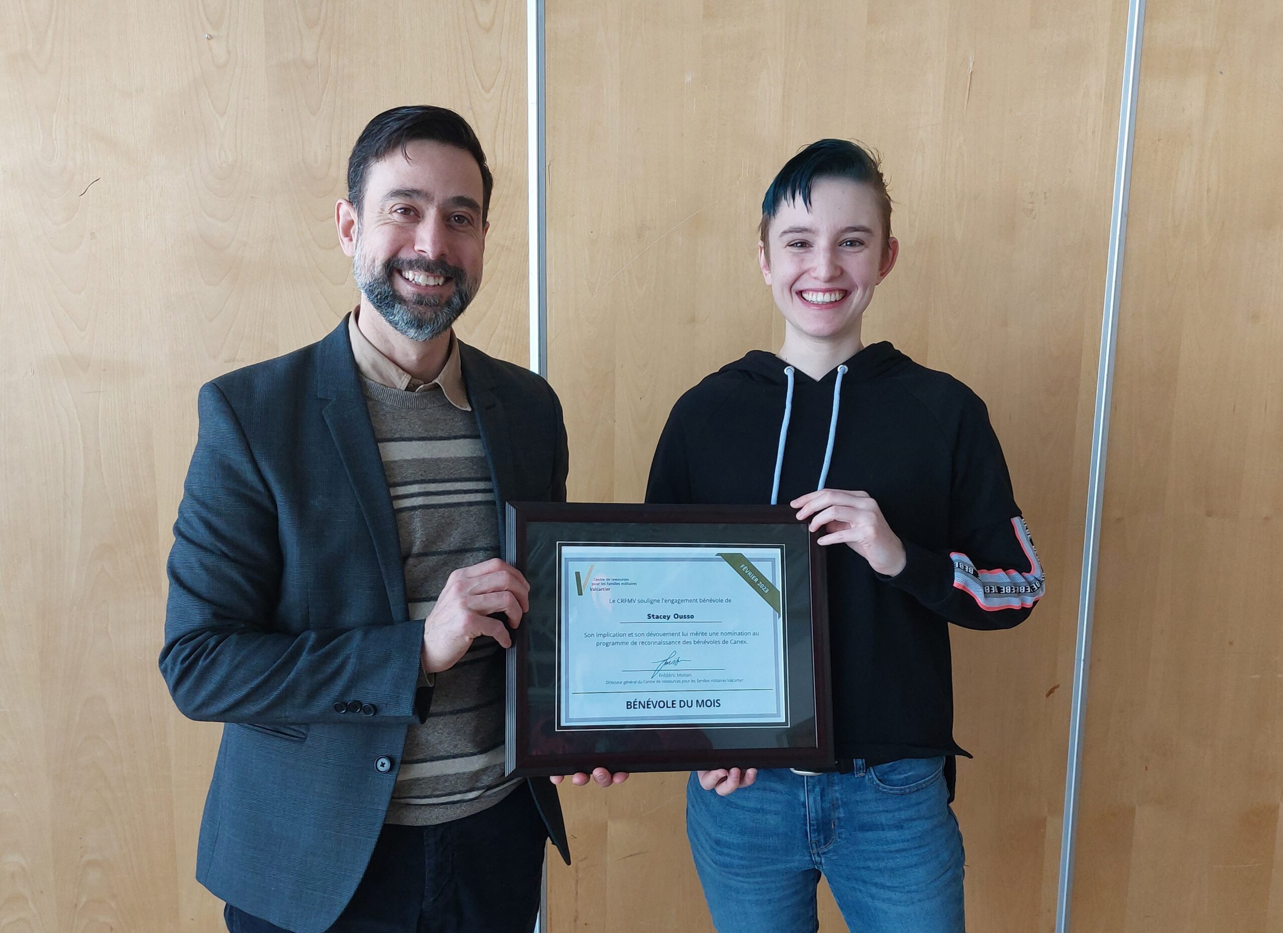 “Stacey s’est jointe a notre équipe de bénévoles l’année dernière. Depuis son tout début, elle s’est impliquée dans différents types de bénévolat au CRFMV. Elle est toujours partante pour nouveaux défis. Elle a su mettre en avant ses talents et sa créativité lors de photoshoots thématiques avec les familles de la communauté. Elle se démarque par son talent, sa gentillesse, sa douceur et son professionnalisme. C’est toujours agréable de collaborer avec elle. Merci Stacey!”